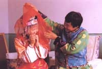 当送亲人陪护着新娘到达男家后,新郎家对送亲贵客格外关照,未进门,先敬"进门盅",进屋后再设"接风酒",可谓细致入微,惟恐怠慢。尽管如此,新娘的男傧相"花大"仍然横挑鼻子竖挑眼,新娘的弟辈"库吐鲁"们则一边吃喝,一边偷酒杯筷子碗碟等藏在身上,以此捉弄新郎和陪客。
