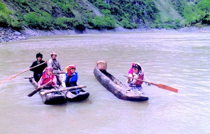 怒江峡谷危岩耸立,峭壁千仞,江河湍急,汹涌澎湃。过去只有羊肠小道,连骡马通行的驿道亦屈指可数,且通行时间不长,多修建于二十世纪三四十年代。许多山隘路口只能靠独木桥、独木梯攀援而过,而到大雪封山的隆冬季节就几乎与世隔绝。然而勤劳勇敢并富于智慧的怒族先民,想出种种办法爬山涉水,过江越岭,与大自然抗争。其中以各种渡江的交通工具最具特色。