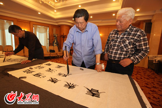 山东著名书画家为庆祝大众网成立十周年现场挥毫泼墨。