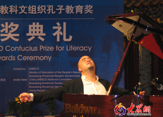 大众网曲阜9月23日讯(记者 余梁)九月的古城曲阜秋风送爽。今天下午,首届联合国教科文组织孔子教育奖颁奖盛典在曲阜六艺城大剧院隆重举行。颁奖典礼由山东省政协副主席王久祜主持,联合国教科文组织代表、副教育助理总干事唐虔宣布联合国教科文组织表彰孔子教育奖获奖者决定并致辞;全国政协常务副主席王忠禹和联合国教科文组织代表、副教育助理总干事唐虔向获奖代表颁奖;教育部副部长、联合国教科文组织执行局主席章新胜,山东省副省长李玉妹先后致辞;孔子教育奖获奖代表、摩洛哥教育部国务秘书阿尼斯·毕鲁,印度拉贾斯坦邦识字和继续教育部主任苏可拉发表了获奖感言。