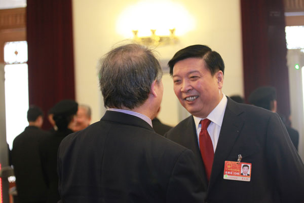 3月5日,十一届全国人大四次会议在北京人民大会堂开幕。图为全国人大代表、山东省省长姜大明接受记者专访。吴莼 摄