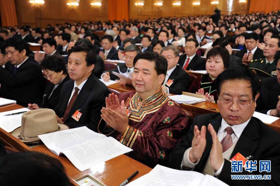 3月5日,第十一届全国人民代表大会第四次会议在北京人民大会堂开幕。这是全国人大代表在认真听会。 新华社记者 王建华摄