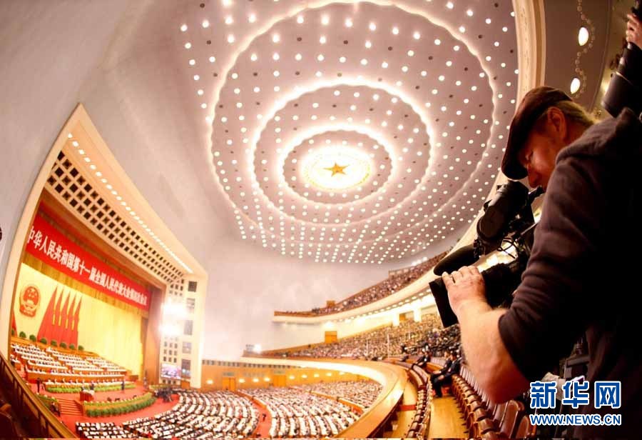3月5日,第十一届全国人民代表大会第四次会议在北京人民大会堂开幕。这是记者在采访拍摄。