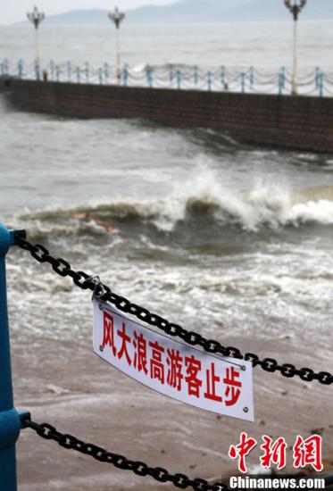 8月7日,山东青岛栈桥海域掀起大浪。中新社发 黄杰显 摄 图片来源:CNSPHOTO