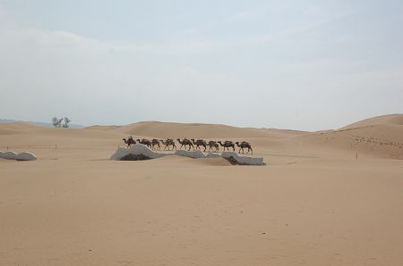 当然,沙坡头的惊人举动,还数治沙科技工作者和劳动人民向沙漠的挑战。治沙成果成了人们热爱生活、保护环境和与沙漠斗争的典范,如今由治沙成果引发的环保之旅已蔚然成风,到那里一游,真正能感受到人进沙退的伟大奇迹。