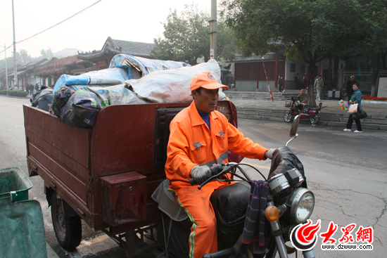 陈杰告诉记者,现在“双节相遇”,千佛山庙会正在举行。为了保持环境卫生,历下环卫部门在千佛山北门附近放置了8个一米多高的垃圾桶,所以,他要多跑几趟垃圾处理场。“那您的一日三餐怎样解决呢?”记者问道。“我和对象轮流回家吃。早晨8点回去,8点半就要赶回来。”陈杰笑着告诉记者。