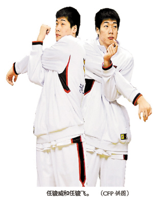 大威,二飞,这是中国男篮队友对任骏威、任骏飞哥俩的别称。这对孪生兄弟长得一模一样,让人很难区分谁是哥哥,谁是弟弟。两人都生于1990年2月4日,虽说是90后,但作为广东宏远队的一员,他们都戴上了CBA总冠军戒指。在赛场上,只要弟弟任骏飞在内线要到位,哥哥的传球总会及时送到,或许,这就是专属默契。上届大运会他们也是兄弟俩一起出战到今年已经是连续第二届了。年轻人,第一要学会的就是坐板凳。这时候,哥哥就会像个长辈:“我打替补的时候多,旁观者清,只要他一下场,我就指出他的不足,让他提高、成长。”对于未来,两兄弟有着明确的目标,“做中国的加索尔兄弟!”