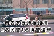 2011年1月4日11时20分许,泰安市公安局民警到案件嫌疑人家中调查了解情况时,遭到室内2名犯罪嫌疑人员隔防盗门开枪射击,犯罪嫌疑人在将3位民警、1位协警打伤后,抢劫一辆过往汽车逃跑。[详细]