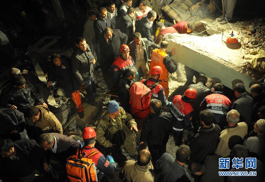 10月23日,在土耳其东部凡省埃尔吉斯,当地民众和救援人员一起在废墟中寻找生还者。土耳其总理埃尔多安23日说,到目前为止,土耳其东部凡省发生的强烈地震已经造成138人死亡、350人受伤。据土耳其伊斯坦布尔地震研究中心报告,当地时间23日13时41分(北京时间18时41分),凡省发生里氏7.2级地震,震中位于和伊朗接壤的凡省塔巴利村,震源深度5公里。新华社/法新社