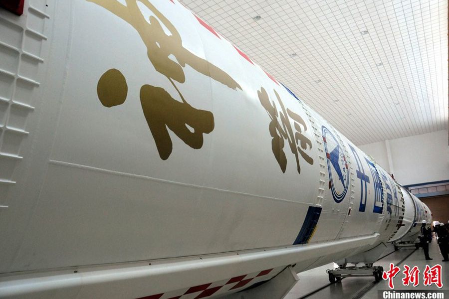 9月25日,中国酒泉卫星发射中心载人航天发射场,承担“神舟八号”飞船发射任务的“长征二号F”运载火箭顺利转运至垂直总装测试厂房。