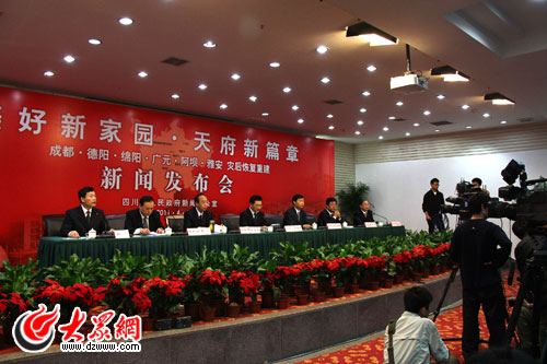 发布会上,成都、德阳、绵阳、广元、阿坝、雅安6个重灾市州的负责同志介绍了本市(州)灾后恢复重建情况。特大地震发生三年来,中央作出“一省帮一重灾县”对口支援部署,18个对口援建省市积极响应,全力为中央分忧、为灾区解难。四川人民大力弘扬伟大抗震救灾精神,“苦干三年、跨越二十年”,创造了抗震救灾的奇迹、灾后重建的奇迹和加快发展的奇迹,已经从悲壮走向新生。据在场官员介绍,灾区多个市州灾后重建工作已经基本完成,重建后基本生活条件和经济社会发展水平总体超过灾前,很多地区发展预计前进十至二十年。