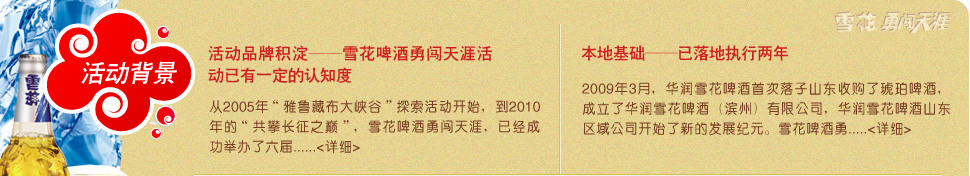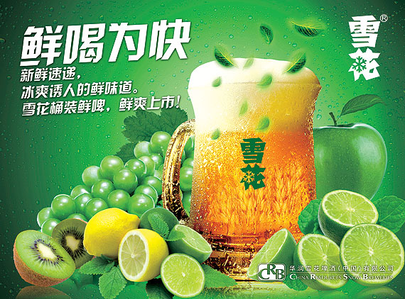 2002年,华润雪花啤酒(中国)有限公司全力将雪花啤酒塑造成为全国品牌,雪花啤酒一直以清新、淡爽的口感,积极、进取、挑战、创新的品牌个性深受到全国消费者的普遍喜爱,成为当代年轻人最喜爱的啤酒品牌。