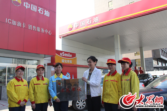 位于山大路与文化路交界处中国石油济南分公司第18加油站因工作效益突出、团队管理良好、服务周到细致,而受到广大司机朋友的称赞,因此成为了示范工程的首批示范单位。中国石油山东销售公司党委副书记、纪委书记、工会主席王桂娟为中国石油济南分公司第18加油站经理王善平颁发示范单位奖牌。