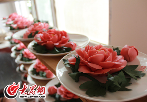 成品洛阳牡丹瓷看上去与真正的牡丹花无异