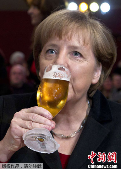 当地时间2月22日,德国各政党举办圣灰星期三集会活动,德国总理默克尔出席并“豪饮”啤酒。