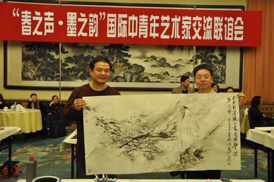 大众网讯 2013年4月画家孙大威应邀参加《中国政协报》在北京举办的“春之声墨之韵国际中青年艺术家交流联谊会”,并在现场作画,得到与会领导和专家的一致认可和高度赞扬。