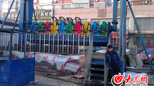 “有钱没钱,回家过年”,这句歌词唱的不是吴桥人王明的生活。腊月十九,当在外打工的人们千方百计往家赶的时候,高唐县鱼邱湖畔的广场却迎来几辆来自吴桥的大卡车,车上卸下的“铁家伙”搭建起来后,是十多座游乐设备,其中“空中飞椅”和“碰碰车”是王明家的,也是她和老公在外拼搏的全部家当。