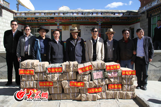 山东宣传系统考察组一行向吉定村两委捐赠图书。