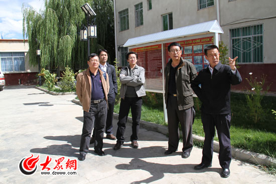 援藏干部总领队、日喀则地委副书记张宁波(右一)陪同考察组一行参观山东援藏干部公寓。