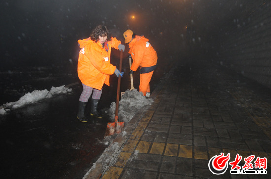 13日夜间,历下城管迅速出动,重点保障旅游路、经十东路、千佛山南路、山大南路、燕子山西路、“怪坡”等交通事故多发地段的路面畅通。
