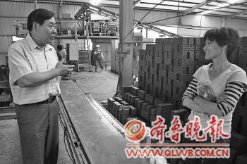 ◤16日,宋茂胜在砖厂询问工人工作和生活情况。