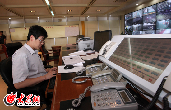 工作人员在安全生产指挥中心内控制和监控生产情况。(盛堃 摄影)