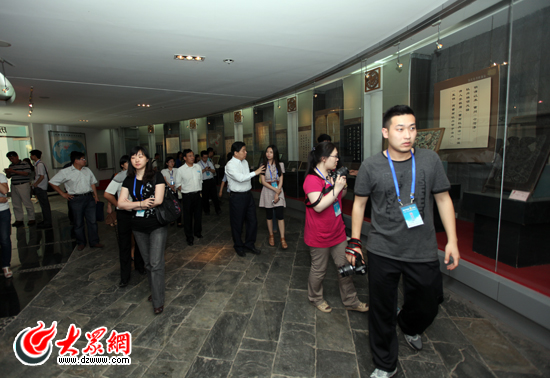 采访团记者走进曹州牡丹园的中国牡丹博物馆。(盛堃 摄影)