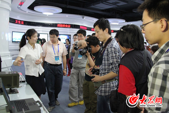 大众网济南5月13日讯(记者 王磊 盛堃 马鑫)13日下午,“科学发展新山东——鲁花杯第八届中国网络媒体山东行”采访团来到位于济南经十东路的浪潮科技园。在浪潮云计算创新中心,记者们亲身体验了卫生云、媒体云等多种云计算应用给人们生活带来的神奇改变,这些看得见、摸得着的“云”让许多记者感叹科技创新的独特魅力,从云计算到云服务,浪潮让“浮云”落地了。