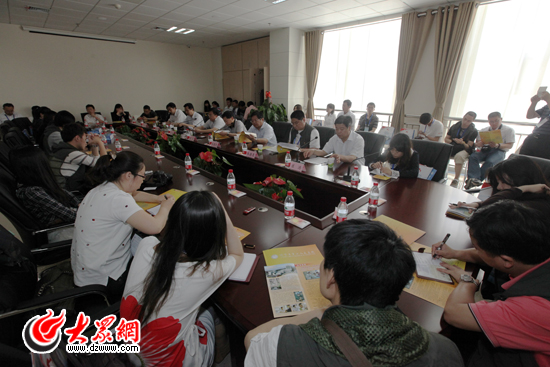 采访团领导、记者与济宁市卫生局领导、济宁市第二人民医院领导座谈。(盛堃 摄影)