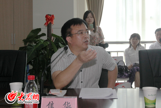 济宁市卫生局局长焦华在座谈会上介绍济宁市“先看病、后付费”工作情况。(盛堃 摄影)