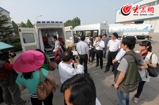 中通客车控股股份有限公司相关负责人向采访团介绍了其公司生产的多功能急救车。(盛堃 摄影)