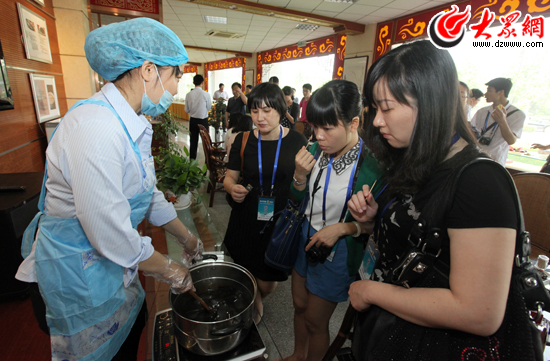 今天上午,科学发展新山东——“鲁花杯”第八届中国网络媒体山东行西线采访团走进中国阿胶博物馆。(盛堃 摄影)
