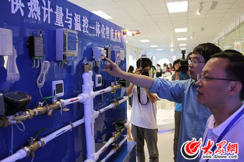记者们现场体验供热计量与温控一体化智能系统。(马鑫 摄)