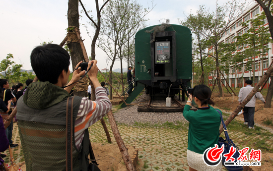 秋季落叶不扫,路面中间绿化带野花盛开。西山封山育林,形成一片生机盎然的“自然保护区”,校园南面的绿意“湿地”。记者们和学子们惬意地走在树影婆娑、凉风习习的校园里,沿路欣赏着雕塑与创意设计,一览四架“歼六”战机及军舰导弹的风采,让人回顾起百年青岛工业历史;或坐在绿皮火车车厢改装成的商店咖啡馆惬谈,坐在林下横躺的树干上阅读,不入课堂就能得到青岛工业文化的熏陶。