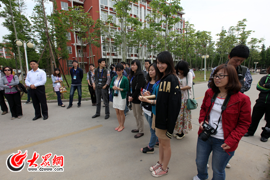 5月18日上午,科学发展新山东——“鲁花杯”第八届中国网络媒体山东行采访团走进青岛职业技术学院。(盛堃 摄影)