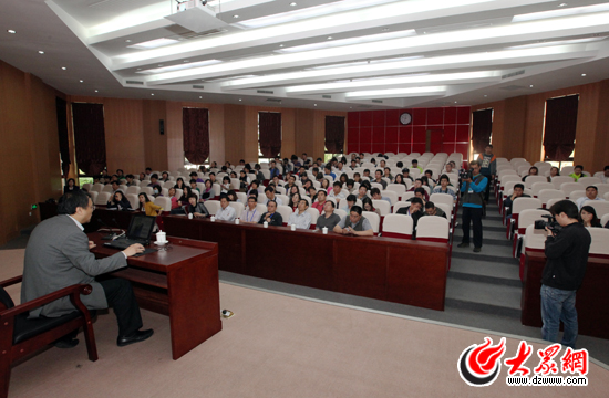 采访团记者在报告厅内听取情况介绍。(盛堃 摄影)