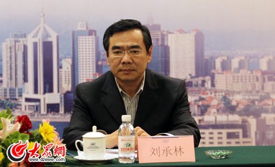 青岛市政府副秘书长刘承林出席新闻发布会。(盛堃 摄影)