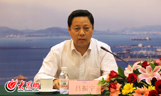 青岛市委宣传部常务副部长吕振宇主持新闻发布会。(盛堃 摄影)