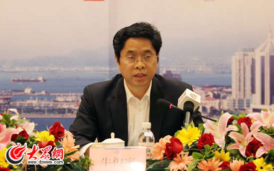 中共青岛市委常委、副市长牛俊宪出席新闻发布会并介绍青岛市相关情况。(盛堃 摄影)