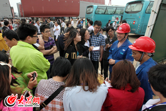 青岛北海船舶重工有限责任公司相关负责人接受采访团记者采访。(盛堃 摄影)
