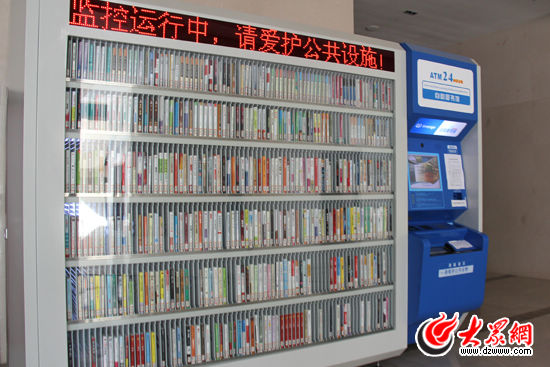 位于文登市民文化中心的24小时自助借书器。(马鑫 摄)