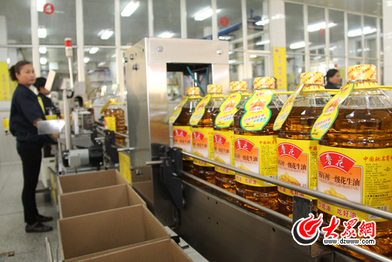 鲁花花生油灌装生产线。(马鑫 摄)