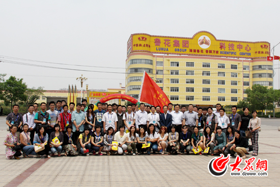 科学发展新山东——“鲁花杯”第八届中国网络媒体山东行采访团在鲁花集团采访时合影留念。(马鑫 摄)