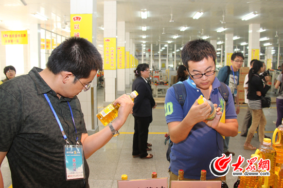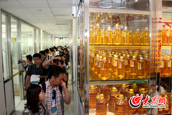 鲁花5S压榨花生油成为记者们关注的焦点。(马鑫 摄)