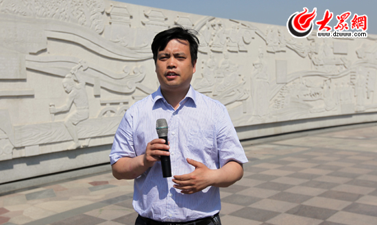 枣庄市中区区委常委、宣传部长王光明介绍东湖公园(全民健身中心)相关情况。(盛堃 摄影)