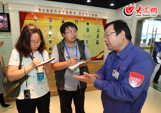 兖矿国泰化工有限公司党委书记王天峰接受采访团大众日报记者、大众网记者采访。(盛堃 摄影)