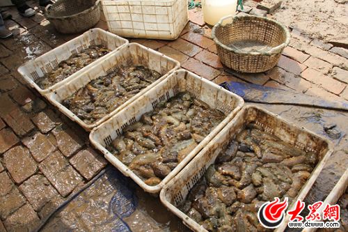 刚刚捕捞上来的海参还要送到加工厂进行进一步加工。(马鑫 摄)