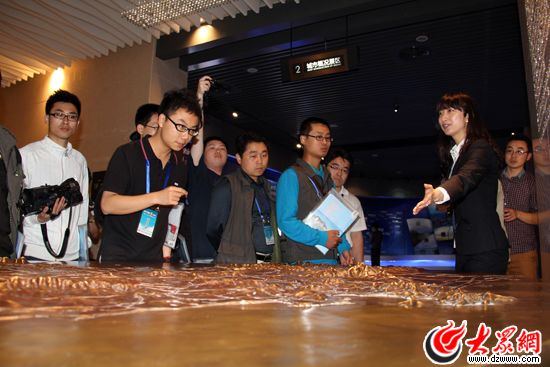采访团参观威海市市民文化艺术中心里的规划馆。(马鑫 摄)