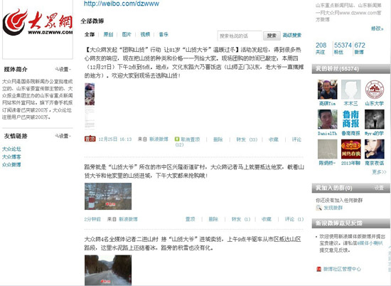 按照计划,27日一早,大众网记者将驱车前往山货老人所在村子,把老人和他家中全部山货送到济南。同时,大众网记者将在“@大众网新浪官方微博”对本次活动进行全程直播,欢迎网友关注。
