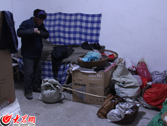 当天室外温度零下6度,没有取暖设备的杨洪义家,门里门外温度几乎一样。(韦辉 摄)